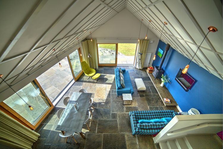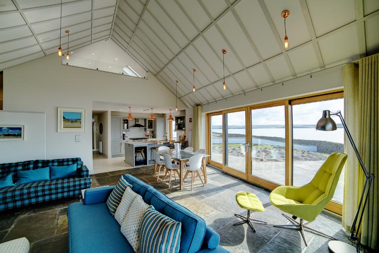 We knew extending the house would be straightforward and without red tape: under 40 sqm the standard permitted development rights applied. We spent a lot of time discussing the look and feel of the house with its owners and their architect and it was clear that the conventional ‘twee’ holiday cottage was not what they were looking for. The main brief was: create a holiday home that would give plenty of friends and family the space to retreat, and with lots of kitchen space for ample entertaining. The house’s location is beautifully wild and elemental – and they owners wanted this feel to extend into the house. The finished design means the space is flooded with natural light – while features such as floor to ceiling glass and the slightly angled extension with vaulted ceiling seem to pull the eye into the landscape.